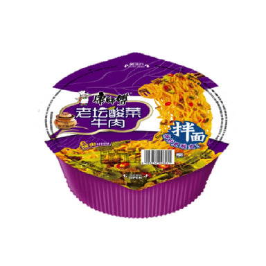 $3.40| /Out of stockBrand:康师傅Kangshifu 干拌面老坛酸菜牛肉面137G KSF Instant Stir Noodle Bowl Pickled Vegetable With Beef 137G
